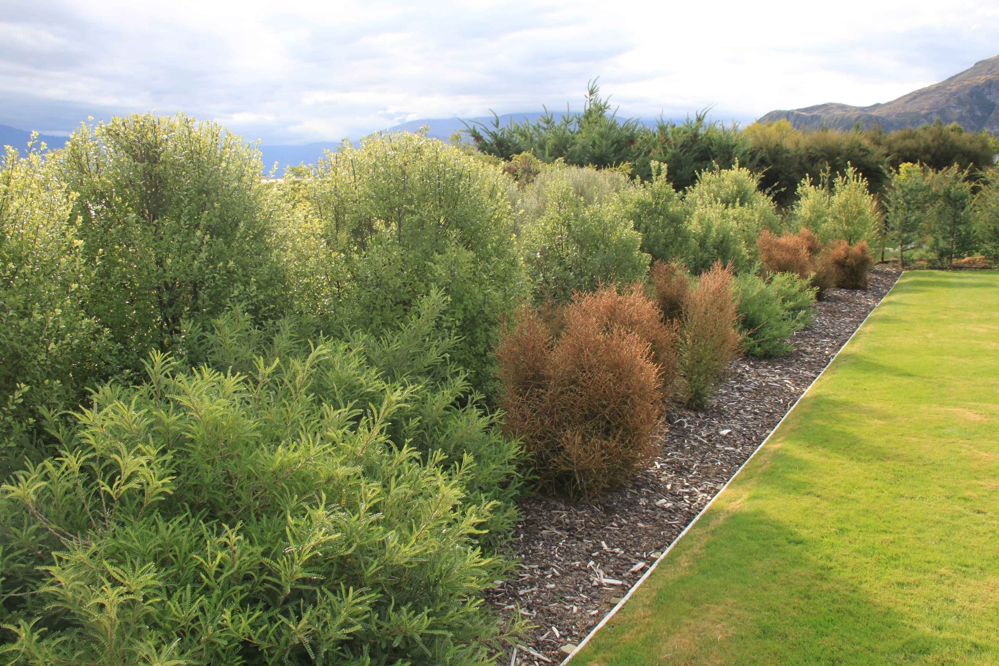 This large garden has been designed to wrap around the newly built house designed by Chris Norman Architecture. The garden is broken into distinct spaces with the views out to Lake Wanaka and mountains beyond being the feature from within the house.